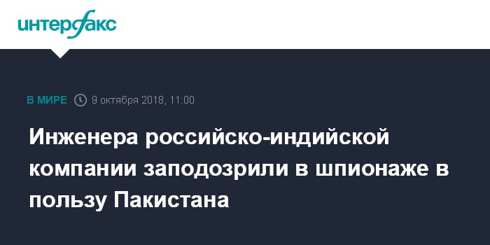 Инженера российско-индийской компании заподозрили в шпионаже в пользу Пакистана