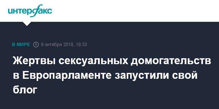 Москва. 9 октября. INTERFAX.RU - Работающие в Европейском парламенте мужчины и женщины, которые подверглись сексуальным домогательствам и злоупотреблениям в Европарламенте, запустили во вторник блог MeTooEP, чтобы анонимно сообщать о фактах подобных злоупотреблений.
