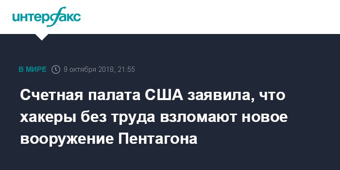 Счетная палата США заявила, что хакеры без труда взломают новое вооружение Пентагона