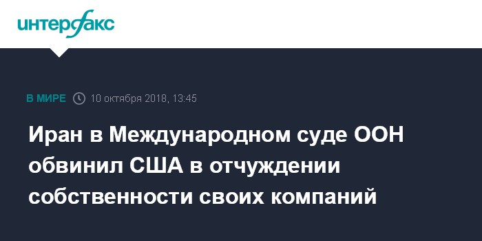 Речь идет об иске Ирана против США, который Тегеран направил в суд ООН в июле этого года. Слушания проходили в суде ООН с 27 по 30 августа, после чего суд 3 октября вынес предварительное решение по делу.