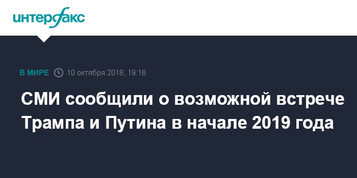 СМИ сообщили о возможной встрече Трампа и Путина в начале 2019 года