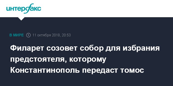 Филарет созовет собор для избрания предстоятеля, которому Константинополь передаст томос