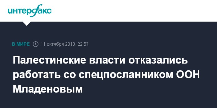 Член исполнительного комитета Организации освобождения Палестины Ахмед Мадждалани заявил, что он довел до сведения генерального секретаря ООН Антониу Гутерриша: руководство Палестины больше не хочет взаимодействовать с Младеновым после того, как он "превысил свои полномочия" в попытках достичь соглашения между Израилем и палестинской группировкой ХАМАС.