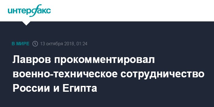 Лавров прокомментировал военно-техническое сотрудничество России и Египта