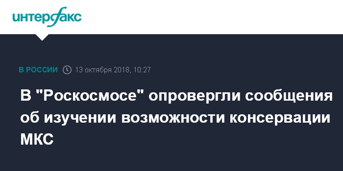 Москва. 13 октября. INTERFAX.RU - В госкорпорации "Роскосмосе" опровергли сообщения, что госкомиссия по расследованию аварии ракеты "Союз-ФГ" якобы изучает возможность консервации Международной космической станции.