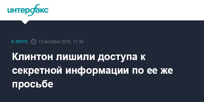 В письме главы сенатского комитета по юридическим делам Чака Грассли отмечается, что доступ Клинтон к секретной информации был прекращен 30 августа. Кроме того, еще пять ее бывших сотрудников лишены такого доступа с 20 сентября. У этих людей был специальный статус, разрешавший получать секретные данные уже после ухода из администрации США.