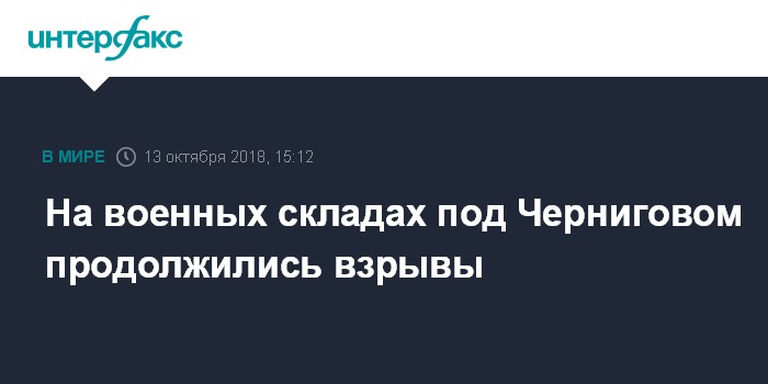 Москва. 13 октября. INTERFAX.RU - За один час на территории шестого арсенала министерства обороны Украины возле поселка Дружба в Черниговской области наблюдалась детонация боеприпасов - до трех взрывов.