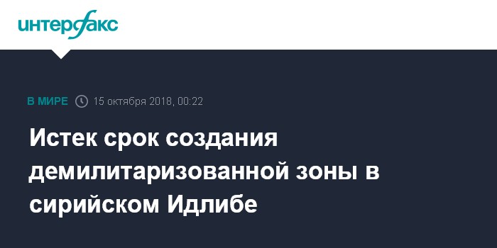Москва. 15 октября. INTERFAX.RU - В понедельник, 15 октября, истек срок создания демилитаризованной зоны в сирийском Идлибе.