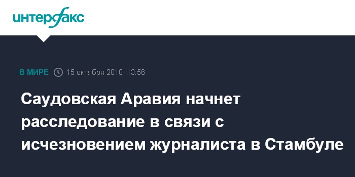 Москва. 15 октября. INTERFAX.RU - Король Саудовской Аравии Салман Аль Сауд распорядился открыть внутреннее расследование по делу исчезнувшего саудовского журналиста Джамаля Хашкаджи, работавшего на издание The Washington Post, сообщает в понедельник агентство Bloomberg со ссылкой на официальных представителей в Эр-Рияде.