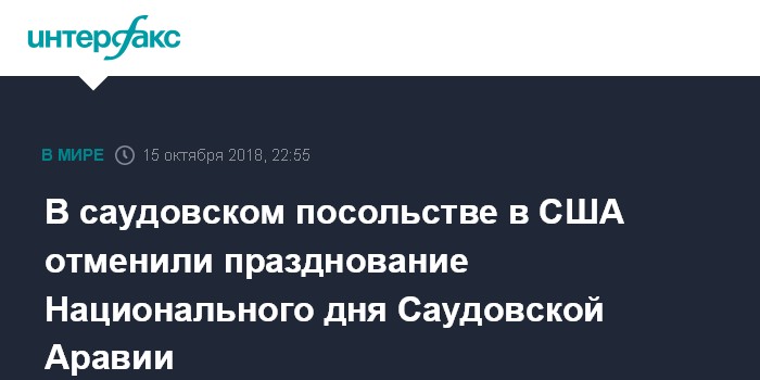 Москва. 15 октября. INTERFAX.RU - Посольство Саудовской Аравии в Вашингтоне отменило праздничный прием, приуроченный к мероприятиям по случаю Национального дня королевства, сообщила газета The Hill со ссылкой на сотрудника дипмиссии.