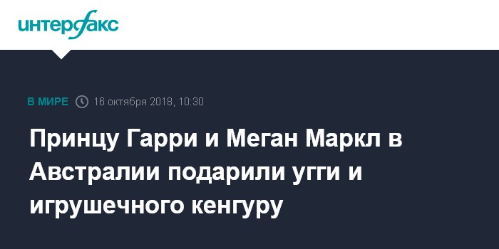 Москва. 16 октября. INTERFAX.RU - Принц Гарри и его супруга Меган Маркл во время турне по Австралии получили первый подарок для своего первенца; о том, что герцогиня Сассекская беременна, накануне официально объявил Кенсингтонский дворец.