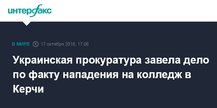 Москва. 17 октября. INTERFAX.RU - На Украине завели уголовное дело в связи с нападением на колледж в Керчи, сообщается в среду на сайте прокуратуры Автономной республики Крым, расположенной в Киеве.