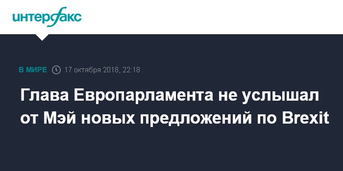 Москва. 17 октября. INTERFAX.RU - Председатель Европейского парламента Антонио Таяни заявил, что не услышал ничего нового относительно Brexit во время выступления на саммите ЕС британского премьера Терезы Мэй, но в то же время отметил обстановку расположенности сторон прийти к соглашению.