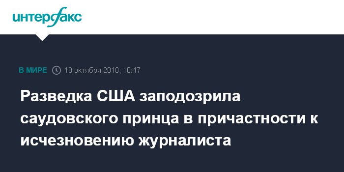 "Разведывательные службы США получают все больше доказательств того, что к этому (к исчезновению журналиста - ИФ) причастен наследный принц Саудовской Аравии", - говорится в сообщении издания. Тем не менее, пока американская разведка не смогла обнаружить прямых свидетельств того, что в исчезновении Хашкаджи замешан саудовский принц.