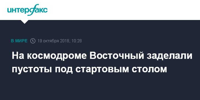Москва. 19 октября. INTERFAX.RU - Работы по заполнению пустот, ранее обнаруженных в бетонных конструкциях стартового стола космодрома Восточный, завершены. Об этом сообщили в пятницу "Интерфаксу" в пресс-службе Центра эксплуатации наземной космической инфраструктуры (ЦЭНКИ).