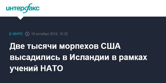По сообщению Корпуса морской пехоты США, учебная десантная операция в Исландии является частью предстоящих в Норвегии крупномасштабных учений НАТО Trident Juncture 2018.