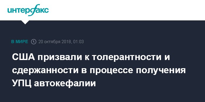 "Толерантность, сдержанность и понимание являются ключом к обеспечению того, чтобы люди с разной религиозной принадлежностью могли жить и процветать вместе в мире. Мы призываем церковных и правительственных деятелей активно продвигать эти ценности в связи с движением к созданию автокефальной украинской православной церкви", - подчеркнул Помпео.