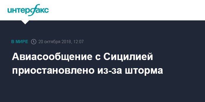 Москва. 20 октября. INTERFAX.RU - Сильный шторм достиг острова Сицилия в Италии, авиасообщение приостановлено, сообщает ситуационно-кризисный центр (ДСКЦ) МИД России в субботу.