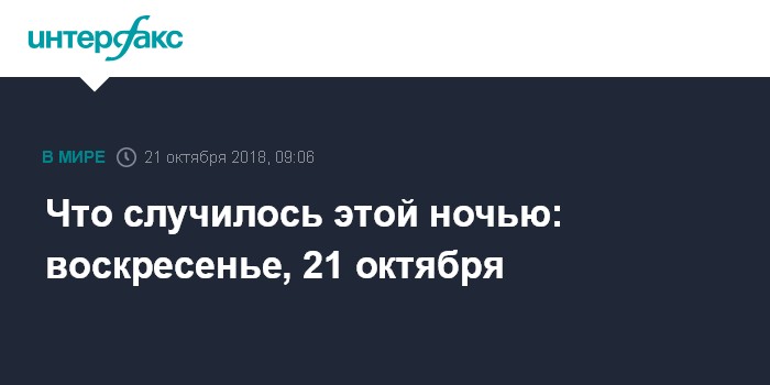 Москва. 21 октября. INTERFAX.RU - Краткая сводка событий, произошедших к утру: