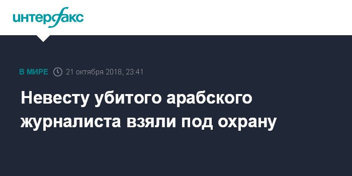 Москва. 21 октября. INTERFAX.RU - Власти Турции поместили невесту арабского журналиста Джамаля Хашкаджи, убитого в посольстве турции в начале октября, под круглосуточную охрану полиции, сообщило агентство Associated Press.