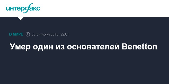 Москва. 22 октября. INTERFAX.RU - Один из основателей итальянской группы компаний Benetton Group Джильберто Бенеттон скончался в понедельник в возрасте 77 лет, сообщает агентство ANSA.