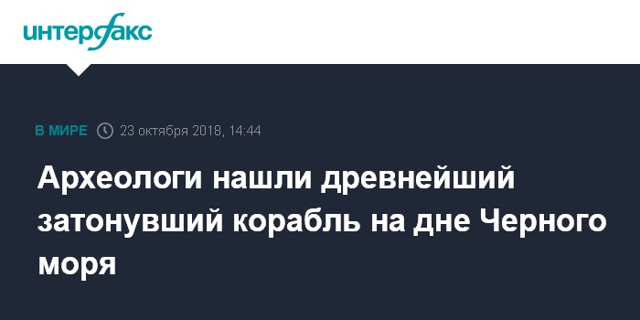 Москва. 23 октября. INTERFAX.RU - Археологи обнаружили на дне Черного моря у берегов Болгарии полностью сохранившийся корабль, затонувший более 2 400 лет назад, пишет во вторник газета The Guardian.