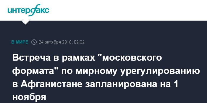 "Московский формат - новая площадка, созданная в 2017 году. Он предусматривает проведение консультаций по вопросу национального примирения в Афганистане путем ведения диалога между официальным Кабулом и движением "Талибан". Первая встреча при участии всех сторон пройдет уже в начале ноября в Москве", - говорится в публикации.