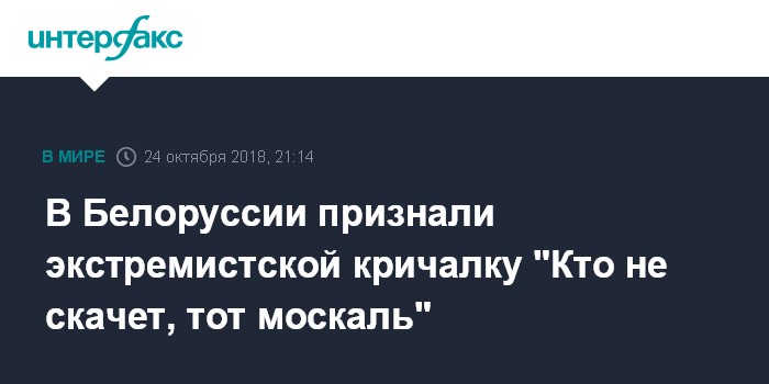 Москва. 24 октября. INTERFAX.RU - В Белоруссии обновлен Республиканский список экстремистских материалов, в него внесена кричалка "Кто не скачет, тот москаль".