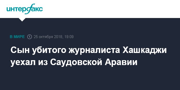 Москва. 25 октября. INTERFAX.RU - Старший сын саудовского журналиста Джамаля Хашкаджи, убитого на территории генконсульства в Стамбуле в начале месяца, уехал из Саудовской Аравии, сообщает в четверг турецкая газета Daily Sabah со ссылкой на близкие к семье Хашкаджи источники.