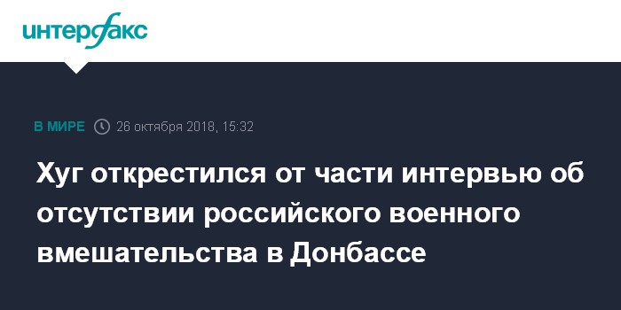 Хуг открестился от части интервью об отсутствии российского военного вмешательства в Донбассе