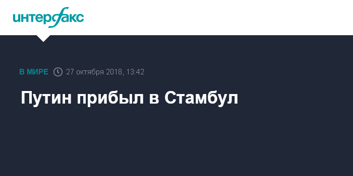 Москва. 27 октября. INTERFAX.RU - Президент РФ Владимир Путин прибыл в субботу днем в Стамбул, где примет участие в саммите Россия-Германия-Франция-Турция по сирийскому урегулированию. Лидеры четырех государств впервые собираются в таком формате, эту встречу планировалось провести еще в сентябре, однако долго не удавалось согласовать из-за разных графиков ее участников.