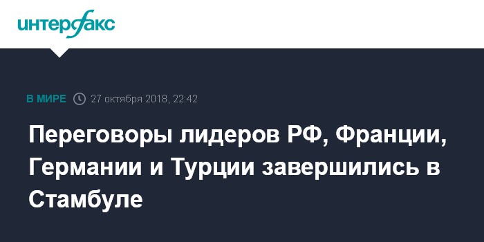 Москва. 27 октября. INTERFAX.RU - В Стамбуле завершились переговоры лидеров России, Германии, Франции и Турции по сирийскому урегулированию.