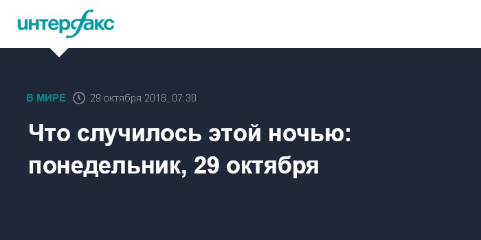 Москва. 29 октября. INTERFAX.RU - Краткая сводка событий, произошедших к утру: