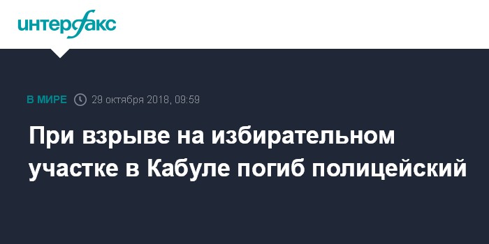 Москва. 29 октября. INTERFAX.RU - Один полицейский убит, еще пять человек получили ранения в результате взрыва в одном из избирательных участков в девятом округе Кабула, сообщил в понедельник афганский телеканал 1TV.