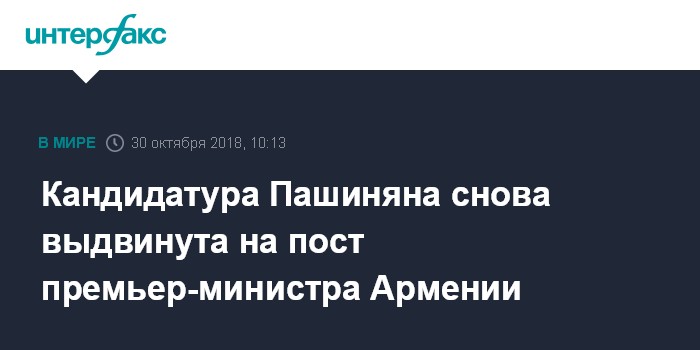 Кандидатура Пашиняна снова выдвинута на пост премьер-министра Армении