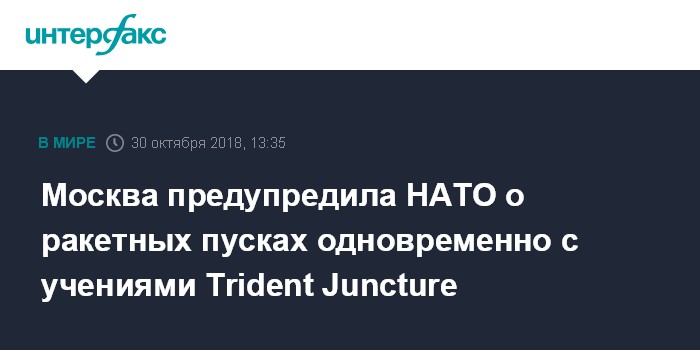 Москва предупредила НАТО о ракетных пусках одновременно с учениями Trident Juncture