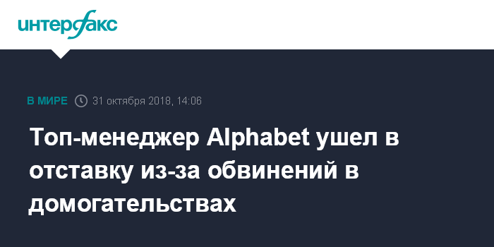 Топ-менеджер Alphabet ушел в отставку из-за обвинений в домогательствах