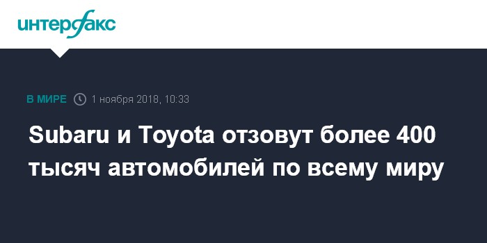 Subaru и Toyota отзовут более 400 тысяч автомобилей по всему миру