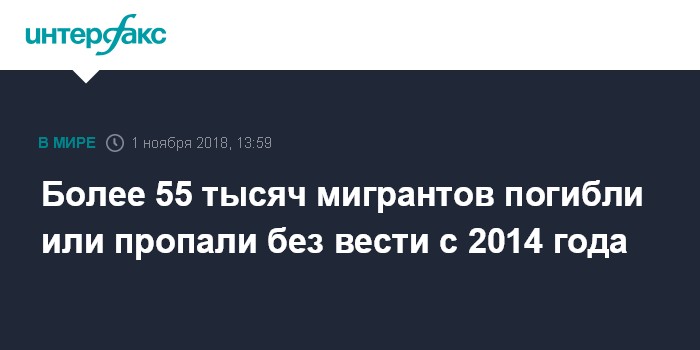 В соответствии с данными, обнародованными организацией в начале октября, число погибших и пропавших мигрантов за четыре года составило 28,5 тыс. человек.
