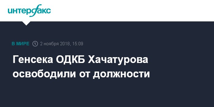 Москва. 2 ноября. INTERFAX.RU - Решением Совета коллективной безопасности Организации Договора о коллективной безопасности (ОДКБ) Юрий Хачатуров освобожден от должности генерального секретаря.