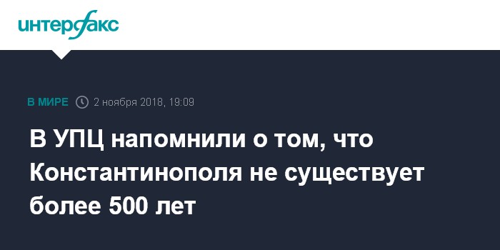 "В УПЦ точно уверены, что Константинополя 565 лет как не существует. Это исторический факт. Но, как кажется, на Фанаре (район Стамбула, где находится резиденция Константинопольского патриарха - ИФ) этого до сих пор не заметили", - сказал "Интерфаксу" в пятницу замглавы Отдела внешних церковных связей УПЦ протоиерей Николай Данилевич.
