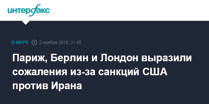 Париж, Берлин и Лондон выразили сожаления из-за санкций США против Ирана
