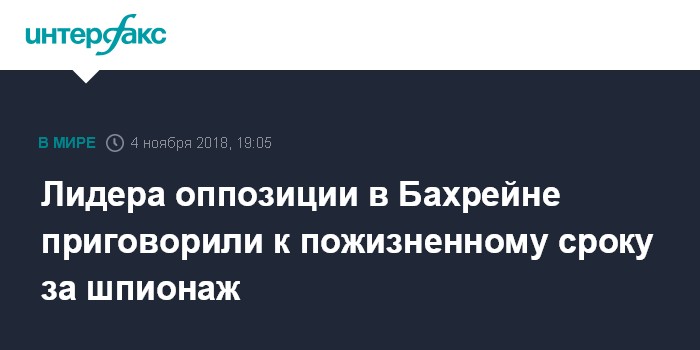 Лидера оппозиции в Бахрейне приговорили к пожизненному сроку за шпионаж