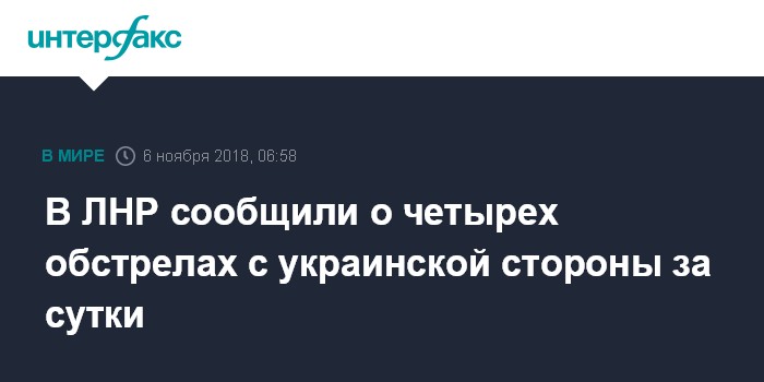 "За 5 ноября 2018 года, со стороны вооруженных формирований Украины зафиксировано 4 обстрела", - говорится в сообщении.