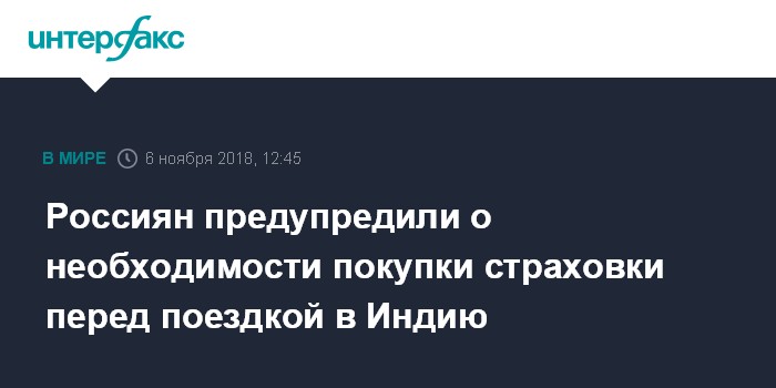 Россиян предупредили о необходимости покупки страховки перед поездкой в Индию