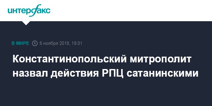 Константинопольский митрополит назвал действия РПЦ сатанинскими