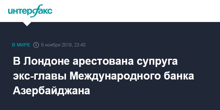 В Лондоне арестована супруга экс-главы Международного банка Азербайджана