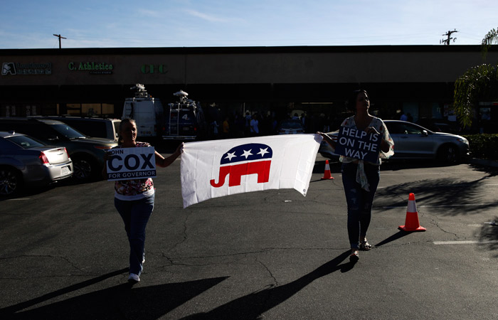 В то же время на выборах в Палату представителей демократы вырвались вперед: в 08:00 по московскому времени они уже обеспечили себе 171 место, у республиканцев - 166 мест. Для большинства в нижней палате Конгресса одной из партий необходимо занять 218 из 435 мест.