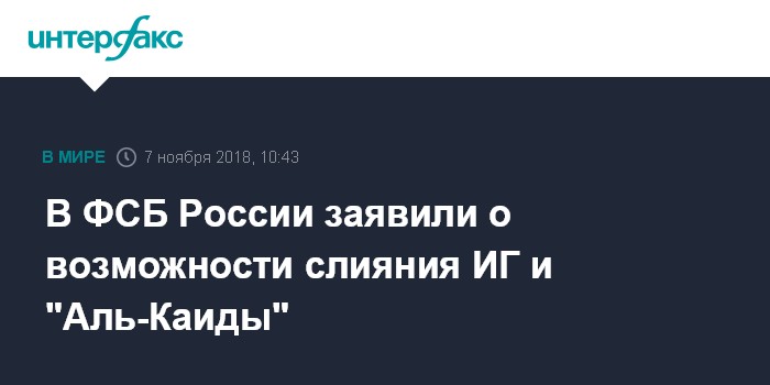 Москва. 7 ноября. INTERFAX.RU - Российские спецслужбы оценивают как весьма серьезное возможное слияние террористических организаций ИГ (запрещена в РФ) и "Аль-Каиды" (запрещена в РФ), заявил директор ФСБ РФ Александр Бортников.