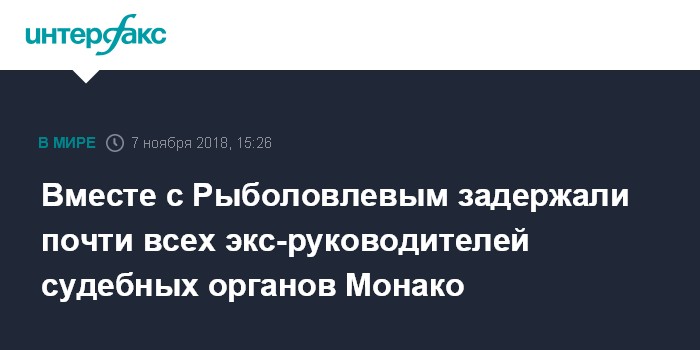 Москва. 7 ноября. INTERFAX.RU - Следователи, занимающиеся делом российского предпринимателя Дмитрия Рыболовлева, задержали не только его, но практически всех бывших руководителей судебных органов Монако, сообщает в среду издание Monaco-Matin.